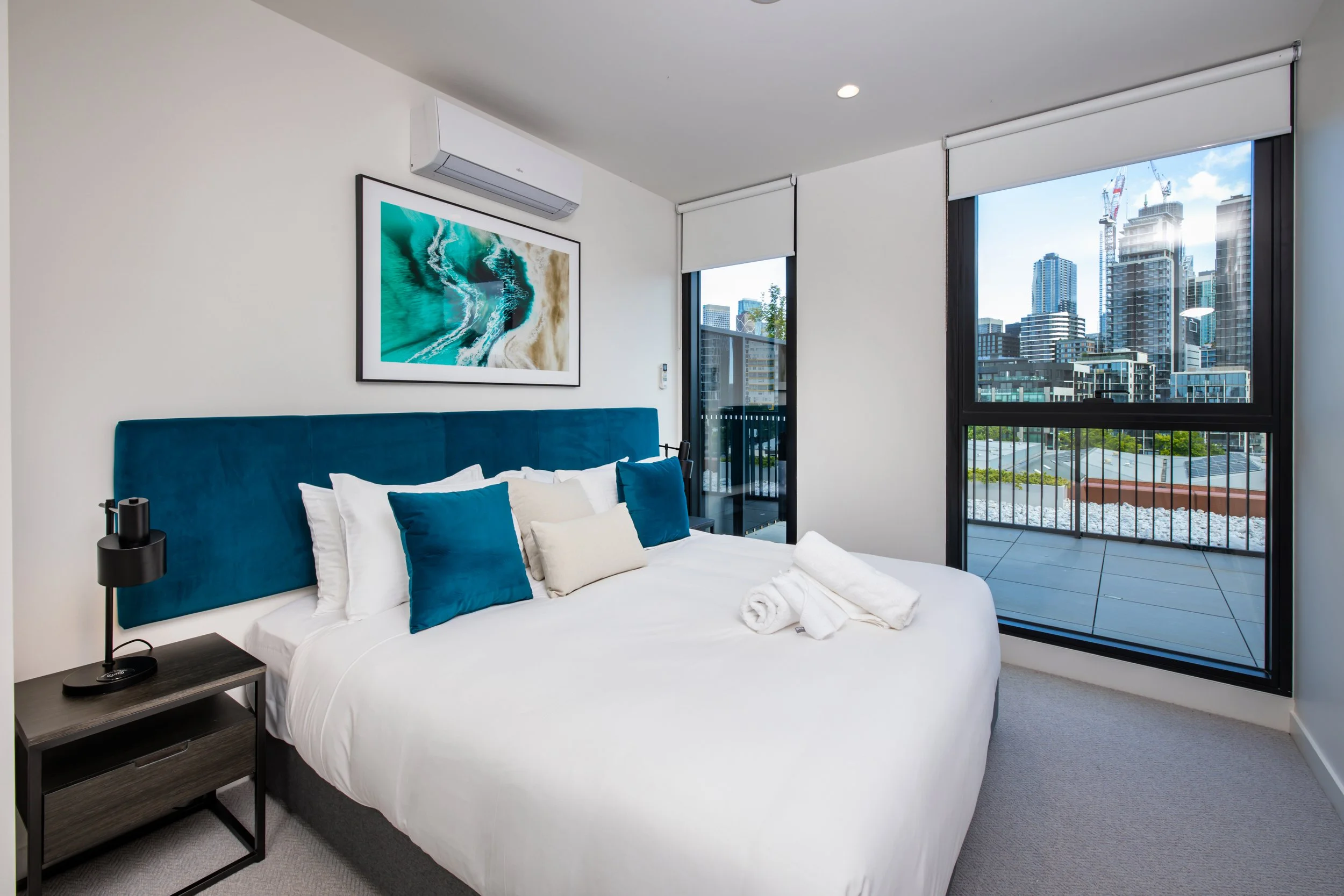 Step onto your private terrace and be captivated by panoramic vistas that showcase Melbourne's captivating cityscape. Whether it's savoring a sunrise breakfast or hosting an intimate gathering beneath the stars, this exclusive vantage point offers an unparalleled experience.